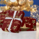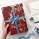 Feliz Navidad Stars Rotes Gold-Script Geschenkpapier