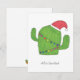 Diese flache Karte wird mit einem Hand-gezeichneten Weihnachtsthemed Kaktus gedruckt, der eine Weihnachtsmannmütze und eine bunte Girlande kennzeichnet. Die Wörter "Feliz Navidad" (frohe Weihnachten auf spanisch) werden unten in einem KursivSchriftart geschrieben.