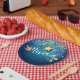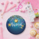7" Plate - Feliz Navidad auf blauem Hintergrund mit Gold Stars - Sehen Sie dieses Design auf Tellern, Servietten, Untersetzer und mehr in meinem Geschäft.