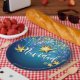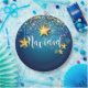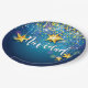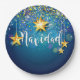 9" Plate - Feliz Navidad auf blauem Hintergrund mit Gold Stars - Sehen Sie dieses Design auf Tellern, Servietten, Untersetzer und mehr in meinem Shop.