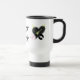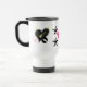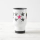 Kennzeichnet ein Zebra-Felsen-Herz, auf jeder Seite mit den rosa und schwarzen Sternen zwischen auf den weißen Reise-Tassen-Entwürfen, die durch Paris-Jazz-Entwürfe und Rabecca Primeau geschaffen werden