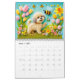 Each month showcases a new scene: a felted pup sniffing tulips, chasing butterflies, lounging among daisies, or playing with ladybugs.