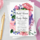 Unsere Blumendusche lädt Sie ein, die Familie und Freunde Ihrer zukünftigen Braut zu ihrem kommenden Frühling oder Sommer Brautparty einzuladen. Diese Einladung enthält wunderschöne Farbtöne aus rosa, lila und blauen Blumen hinter einem goldenen Rahmen mit eleganter Kalligraphie und Text.