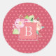 Feminine Chic Mit Monogramm Initial Pink Dot Flora Runder Aufkleber