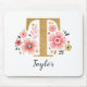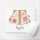 Ein wunderschönes, mit Monogramm, rosa Blumenmousepad mit rosafarbenen Blume und einem goldenen monogrammatischen Buchstaben des Imitats T. Personalisieren Sie das Mauspad, indem Sie unter dem Monogramm Ihren Namen hinzufügen. Macht ein lustiges Geschenk für einen Freund oder für eine Brautjungfrau. Entworfen für Sie von BlackBerry Boulevard.