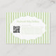 Trendiges, vintage-inspiriertes grünes Schleifenstreifenmuster für Geschäftskarten, die für hübsche, mädchenhafte, feminine Marken konzipiert sind. Perfekt für Shops für handgefertigte Babymode, Visagisten und Kleinunternehmer. Entwickelt mit stilvoller QR-Code-Integration für modernes, auffälliges Branding und professionelles Networking.