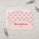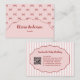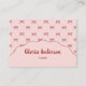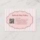 Trendige, vintage-inspirierte rosa-rote Bogen-Streifen-Muster-Visitenkarte, erstellt für hübsche, mädchenhafte, feminine Marken. Ideal für Boutiquen für handgefertigte Babymode, Visagisten und Kleinunternehmer. Enthält eine stilvolle QR-Code-Platzierung für modernes Networking und auffällige professionelle Markenbildung.