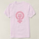 Das weibliche Symbol mit einer Powerfaust in der Mitte in den Schatten des Rosas, auf T - Shirts, schwitzt, Knöpfe, Aufkleber, Geschenkeinzelteile.