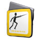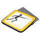 Fencer schwarze Silhouette umzäunt Laptop-Hülle, die ein minimalistisches Piktogramm-Symbol einer schwarzen Silhouette eines Fenders, der sein Schwert hält, und Ihr Text auf weißem Hintergrund mit gelbem Rand zeigt. Dieses coole, moderne Design ist eine Vorlage und ist vollständig anpassbar.