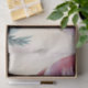 Das Tissue Paper zeigt ein Blumenportrait eines Fennec in bunten botanischen wilden Tierkunst, der bezaubernde kleine Fuchs der Wüste mit großen Ohren inmitten lila und rosa pfirsichfarbener Blume in einem weichen, femininen ästhetischen Kunstwerk.
