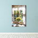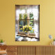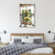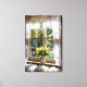 Fenster mit Spitzen-Vorhang und Tulpen Leinwanddruck