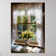 Fenster mit Spitzen-Vorhang und Tulpen Poster