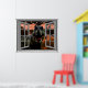 Sonnenuntergang mit T-rex Dinosaurier, Fake Fensterszene, für eine fensterlose Bürowand. Spaß, realistische optische Täuschung landschaftliches Poster für ein Büro oder eine Studiowand.