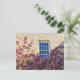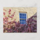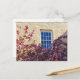 Passen Sie diese Änderung der Adresse Postkarte an! Eine Lehmwand mit weißem französischem Fenster, umgeben von rosafarbenen Kirschblüten. Fotografie von Minerva Bloom.