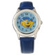 Kinderuhr aus Edelstahl mit blauem Lederarmband
