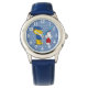 Kinderuhr aus Edelstahl mit blauem Lederarmband