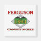 Magnet mit der Flagge von Ferguson, Missouri. Eine weiße Fahne mit einem roten Text und einem Datum für die Gründung der Stadt in einem grünen Feld