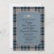 Stilvolle schottische Hochzeitseinladung im traditionellen karierten Muster Ferguson tartan in Blau, Grau, Maron und Schwarz. Ein blauer Textsegment mit Filz zeigt oben eine silberfarbene Blume. Personalisieren Sie den gesamten Text, um Ihre Hochzeitsbedürfnisse Anzug. Matching Produkte sind erhältlich.