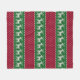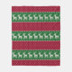 Es ist ein gewebter Pullover-Look - in einem Druck! Ein reich detailliertes Muster mit weißen Rentieren, die über ein grünes Feld ragen, umgeben von einem Weihnachtsrot mit weißen Verzierungen.