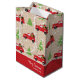 Fügen Sie Ihren Urlaubsgeschenke eine festliche Vintage Touch mit dieser individuellen Geschenktasche hinzu. Geschenktasche hat ein Muster eines Lastwagens mit Geschenken, Weihnachtsbäume mit Schmuck und Schnee, und der Text Frohe Weihnachten mit Ihrem Familiennamen und Jahr auf rot. Der Text kann aufgrund Ihrer Einstellungen personalisiert sein. Geschenktasche macht eine großartige Ergänzung zu Ihrem saisonalen Party Dekoration Geschenkartikel!