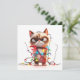Schick ein Lächeln in dieser Saison mit dieser braunen und weißen grauenhaften Katze, die in leuchtenden Lichtern gehüllt ist. Eine lustige Karte für Freunde und Familie.