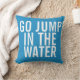 Ferienhaus am Strand oder Strandkissen ist die Farbe des Meeres. Mit einem blauen Hintergrund und extra fett formatierter Typografie "Springen im Wasser" deckt die meisten von einer Seite des Kissens. Mit diesem witzigen Kissen entspannen Sie am Wochenende im Geiste.