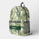 Graue Farnfronten in hellgrün und dunkelgrün auf weißem Hintergrund bilden einen eleganten und femininen Rucksack. Ideal für Schule oder Wandern.
