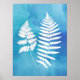 Fern Fronds, weiß auf blauem Aquarellboden Poster