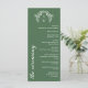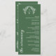 Elegantes 9x4 Hochzeitsprogramm in Farngrün mit einem bogenförmigen Kranzmonogramm und schönen weißen Schriftart. Fern grünes Hochzeitsprogramm mit einer grünen Monografie, die Äste in Form eines Bogens, und wunderschöne Schriftart. Flatches Hochzeitsprogramm in Grün mit einem eleganten Monogramm in weißen und schönen Schriftart und grünen Details in Weiß vor einem grünen Hintergrund.
