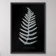 Zeichnend. Polypodyum Vulgare. Schwarz-Weiß-19. Jahrhundert botanische Abbildung eines Farns mit türkisblauen Akzenten. Röntgeneffekt. Schwarzer Hintergrund und weiße Kontur oder Kontur. Negative invertierte Farben.
