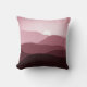Kissen mit abstrakter Bergsonnenuntergangsszene in dunkelviolett taupe, rot und pastellrosa Farben.