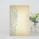 Fertig-Ostflorale geätzte Blume in blau auf der Seite des alten gelblichen Papierauftritts. - Spaß Der antike Hintergrund sieht aus wie etwas aus der Zedernkiste der Großmutter.