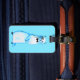 Ein schöner Kofferraumschild mit einer Aquarell-Illustration eines niedlichen, weißen Frettchen, der eine Bogen-Krawatte und ein Monokel hat. Dieses niedliche Freret Design hat eine fröhliche hellblaue, anpassbare Hintergrundfarbe.