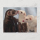 Drei Frettchen zeigen die Postkarte der Frettchen Liebe.
