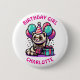 Geburtstagsknopf, der mit dem Namen der Tochter personalisiert werden kann, mit einem niedlichen Cartoon Freret mit Geburtstagshut, Geschenk und Ballons.