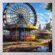 Post apokalyptische verlassene Karnevalsfahrten mit leerem Riesenrad. Urbaner Verfall, verlorene Räume sind Kunst.