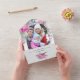 Helle, farbenfrohe und festliche Aquarellsprays aus rosa und roten Poinsettias, Winterholzbeeren, Misteloe und Kiefer, bearbeitbare Textfelder und eine einzigartige Fotoplatte.