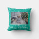 Fest Grün Weiß Schneeflocken Weihnachten 2 Foto Throw Kissen. Personalisieren Sie dieses Weihnachtskissen mit einem Foto auf der Vorderseite und einem auf der Rückseite. Das Design hat weiße Schneeflocken in verschiedenen Formen und Größen auf einem grünen Hintergrund. Dieses Kissen ist ein personalisiertes Weihnachtsgeschenk für Ihre Familie oder Freunde.