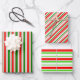 Fest rote, weiße, grüne, farbige Linienmuster Geschenkpapier Set