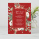 Lassen Sie uns feiern! Entwerfen Sie Ihr eigenes Weihnachtsmenü mit unserem eleganten Blumenrahmen und genießen Sie ein köstliches Essen mit weißer Retro-Typografie. Anpassbare weiße Typografie auf rotem Hintergrund.
