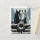 Hübsche Weihnachtspostkarte mit der Grafik eines weißen Pferdes und eines schwarzen Pferdes, stehend an einem Holzgatter, verziert in Feiertagsdörfern und hübschen funkelnden Weihnachtslichtern, die mit Schnee bedeckt sind. Diese Pferde werden in einem Cartoon Comic Buch Pop Art Stil, um ein nostalgisches Gefühl Inside of card hat ein Pferd und Weihnachten pun. Fügen Sie Ihre eigene Urlaubsbotschaft in den personalisierenden Bereich ein.