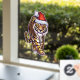 Feste Tiger in einer Weihnachtsmannmütze Fensterkl Fensteraufkleber
