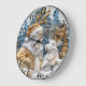 Eine wunderschön gearbeitete Uhr besticht durch den Weihnachtsmann, der in verzierten, goldfarbenen und weißen Roben gekleidet ist und neben einem ruhigen Rentier sitzt.