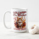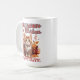 Ein charmantes Kätzchen mit spielerischem Ausdruck sitzt inmitten farbenfroher Herbstblätter. Whimsikale Schriften bringen den Wunsch nach mehr Freunde in dieser Ferienzeit zum Ausdruck. An dieser Weihnachtskaffee-Tasse.