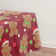 Ein nahtloses festliches Muster mit Lebkuchenkochen, die Weihnachtsmannmützen und Pullover tragen, umgeben von Feriendekorationen auf rotem Hintergrund. Bild ©Prettygrafik.com