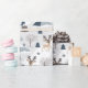 Dieses reizvolle Verpackungspapier zeigt ein skurriles Design, das mit verspieltem Hirsch in einer winterlichen Landschaft geschmückt ist. Umgeben von stilisierten Bäumen und schneebedeckten Bergen erweckt die fröhliche Szene den Geist der Ferien und macht jedes darin verpackte Geschenk für die festliche Jahreszeit wirklich einzigartig.