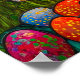 Die verkleidete Glaskunst Jesu Christi mit niedlichen Ostereiern, sonnig und lebendig. Niedliche Kaninchen zur Wiederauferstehung der christlichen Religion. Frohe Ostern mit der Ostereierjagd.