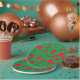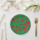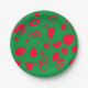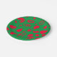 Diese festliche Papierplatte zeigt runde Linien und Formen in Rot auf eine grüne Oberfläche.