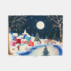 Der Winter ist gekommen und hat ein Dorf mit Schnee bedeckt. Kinder freuen sich, die Leute genießen ihre Winternacht gegen einen hellen Vollmond.
