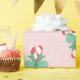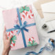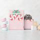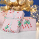 Dieses bezaubernde Urlaubsmuster zeigt Süßspeisen, die in Herzform angeordnet sind und mit grünen Bögen geschmückt sind. Set vor einem hellrosa Hintergrund, bestreut mit zarten Schneeflocken und Punkten, das Design schafft eine skurrile und festliche Stimmung. Die sich wiederholenden Motive verbinden Elemente der Liebe und des Weihnachtsgeistes auf charmante, spielerische Weise.